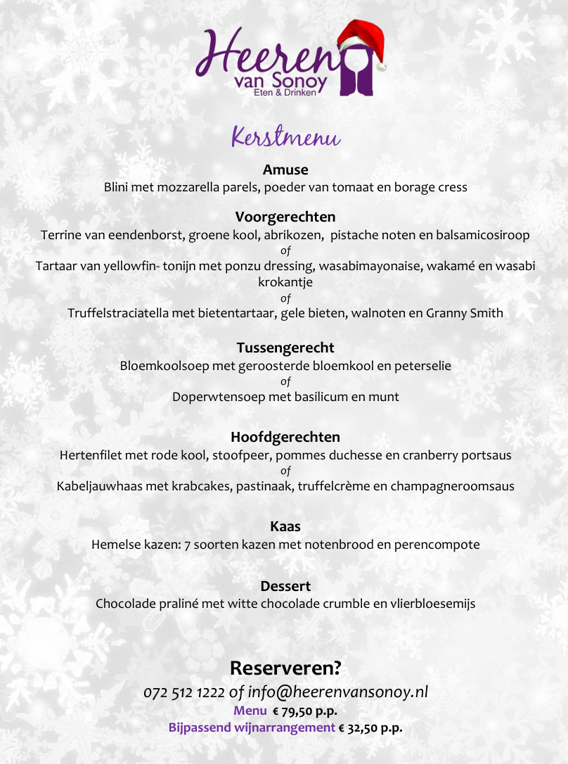 Zoals elk jaar, verzorgen wij ook dit jaar weer op zowel 1ste als 2e kerstdag een feestelijk en smakelijk